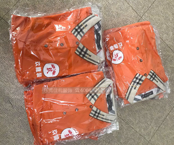 玖龍裝飾的吳總是通過老客戶介紹認識的,因為是做裝飾行業,所以對夏季工作服的要求,是吸汗透氣,而且形象亮眼,給人一種時尚低調有內涵的感覺。吳總選中了一款橙色T恤衫,非常感謝吳總的理解,雖然延遲了交貨日期,但還是非常順利交貨了。