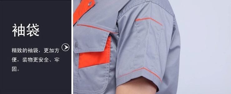 JL-XJ115夏季工作服主色深灰色配橘黃,主色淺灰色配藏藍色高品質全新形象,經典設計,立體裁剪,時尚翻領,質感有型。走線細致,實用性強。插袋撞色拼接,雙明線縫制既時尚又耐用,即使在下班之余也可以穿。