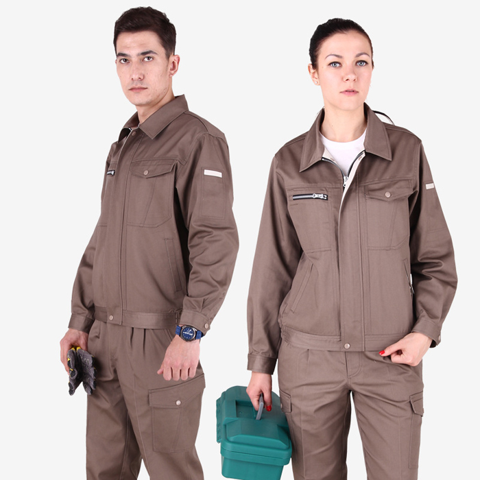 此款工作服設計采用了西服平駁領更具有企業特色,更提高企業形象,而不是簡單平庸工作服領型。左側胸前口袋是采用了紐