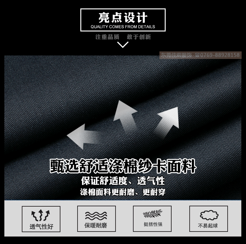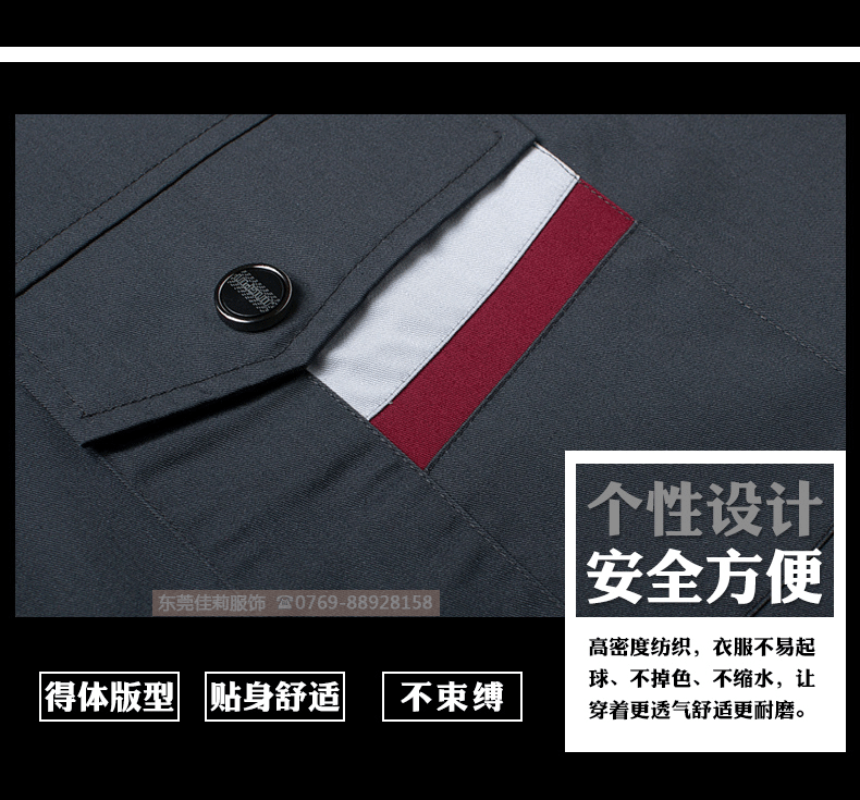 高品質(zhì)全新形象,經(jīng)典設(shè)計(jì),立體裁剪,時(shí)尚翻領(lǐng),質(zhì)感有型。走線細(xì)致,優(yōu)質(zhì)暗扣,實(shí)用性強(qiáng)。胸前口袋撞色拼接,雙明線縫制既時(shí)尚又耐用,即使在下班之余也可以穿。