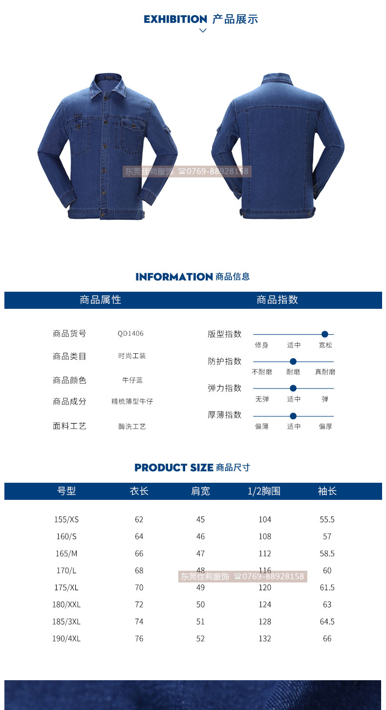 工地工人施工服 薄款長(zhǎng)袖牛仔工服 JL-GC019