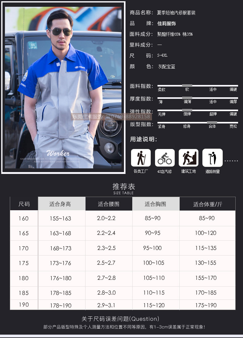 • 北京現代工作服 短袖維修工作服 JL-QX008