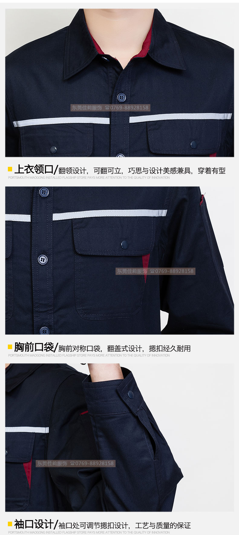 高品質(zhì)全新形象,經(jīng)典設(shè)計,立體裁剪,時尚翻領(lǐng),質(zhì)感有型。走線細致,優(yōu)質(zhì)暗扣,實用性強。胸前口袋撞色拼接,雙明線縫制既時尚又耐用,即使在下班之余也可以穿。