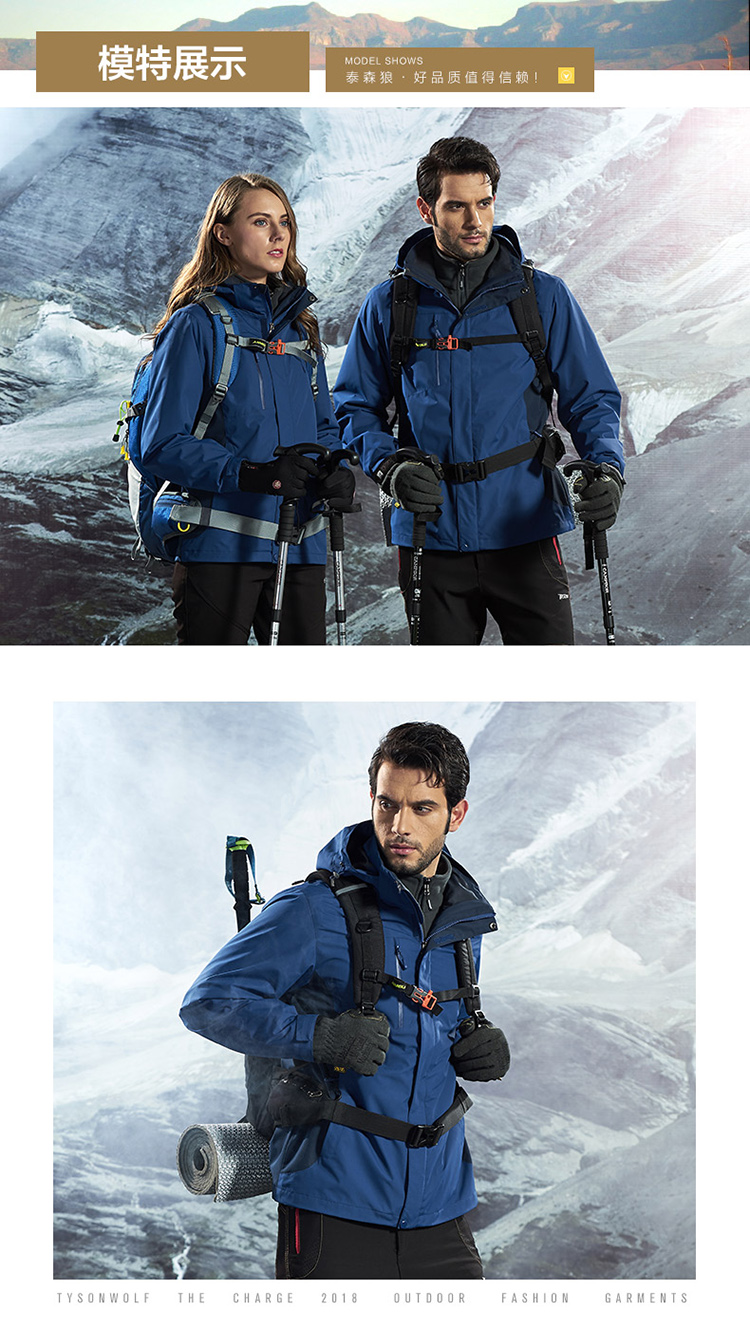防風防雨,鎖溫保暖,腋下透氣網洞,3合1沖鋒衣,內膽可拆卸
